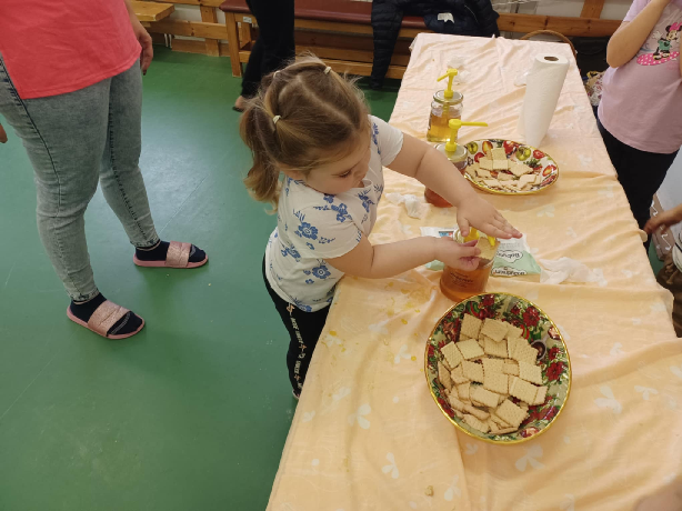 Pénteken, november 21-én került sor az Egészséghét záró programjára, a mézes reggelire a Gombos családdal. A Gombos család, Gombos Ferenc, felesége és édesanyja segítségével a gyerekek egy rövid filmvetítésen keresztül ismerkedhettek meg a méhek életével és a mézkészítés alapjaival. Ezután lehetőségük nyílt kipróbálni a méhészkedéshez szükséges eszközöket, ami nagy izgalmat és rengeteg kíváncsi kérdést hozott magával. A délelőtt végén a gyerekek többféle mézet kóstolhattak, így közvetlen élményen keresztül tapasztalhatták meg a természet édes ajándékait.
