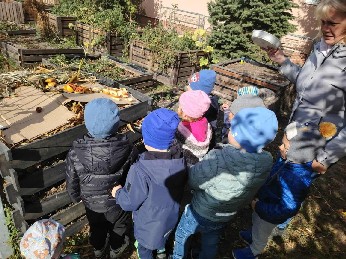 Megmutatjuk gyermekeinknek mik a komposztálható dolgok és mik, amelyek nem kerülhetnek a komposztálóba. A csoportszobákban gyűjtjük a gyümölcs-, zöldség hulladékot a ceruzahegyezéket, szalvétákat, papírzsebkendőt amiket aztán kiviszünk a komposztálóba. Fontos hogy gyermekink folyamatában lássák, milyen átalakulás zajlik illetve a keletkező komposzt tápanyag és élőhely egyben- környezetünk egészségesebb élhetőbb lesz általa. A konyhai és a kerti szerves hulladékból a természet számára hasznosítható tápanyag utánpótlást készítünk a kerti és csoportszobai növények örömére. A „készítünk” talán kicsit erős hiszen a baktériumok és a giliszták végzik a munka nehezét de azért rajtunk múlik az hogy mennyivel kevesebb megy a kukába vagy mennyivel több a komposztálóba. A komposztálás is szelektív hulladékgyűjtés olyan tevékenység, amelysorán közvetlenül tapasztalhatják meg és hasznosítják fel az eredményt a gyermekeinkkel.