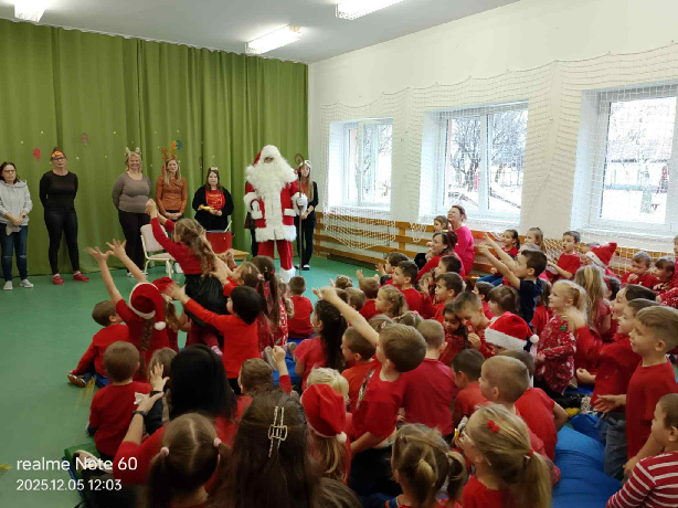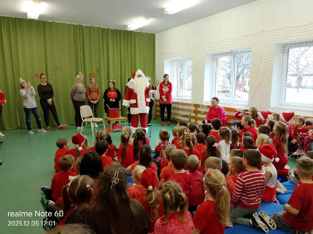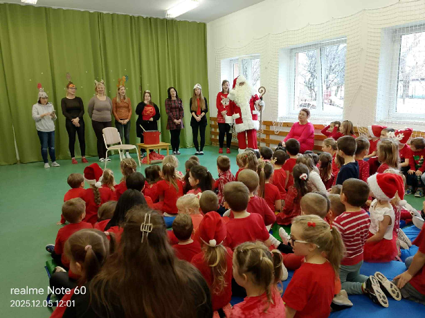 December 5-én a Sárbogárdi Művelődési Központba látogattunk el a középső – és nagycsoportosainkkal ahol egy nagyon kedves báb előadást nézhettünk meg és még a Mikulás is ellátogatott a gyerekekhez. December 6-án pedig az óvodánkba is eljött, és ami igazán felejthetetlenné tette az érkezését, még a hó is elkezdett esni. Sok vidám dallal kedveskedtek a gyerekek neki, minden csoport elmondta a verset, amit erre az alkalomra tanultak. Sok – sok rajzzal köszönték meg a Mikulásnak, hogy idén is megtöltötte a kiscsizmákat.