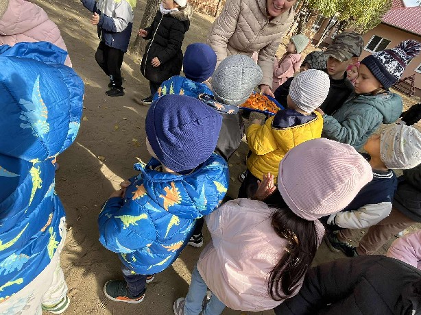 zöldségféléket kínáltunk, melyeket jóízűen fogyasztottak.